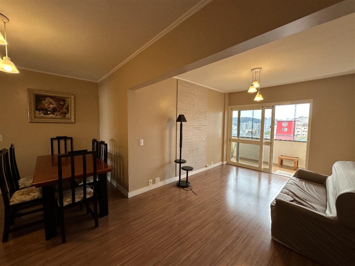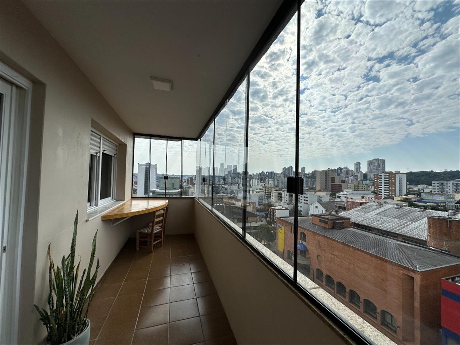 - Sala de estar com ampla sacada fechada com vidro e excelente vista da cidade