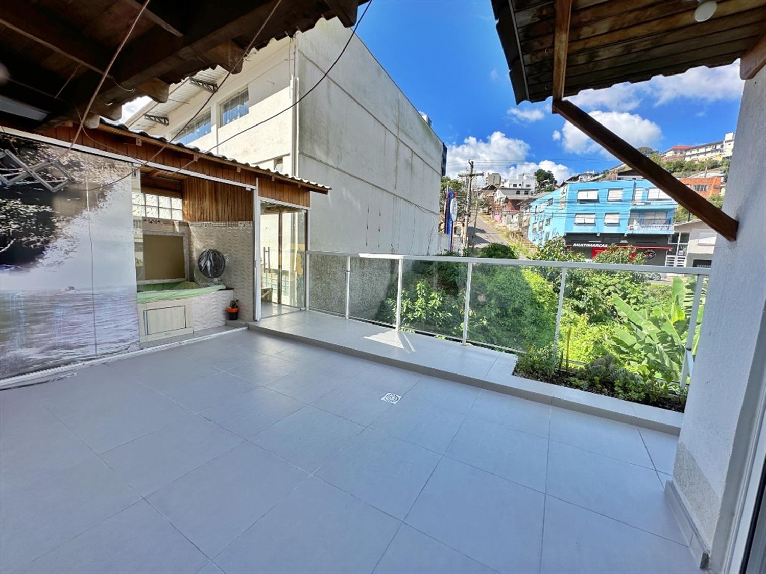 - Terraço com hidromassagem instalada em uma área de vidro;
