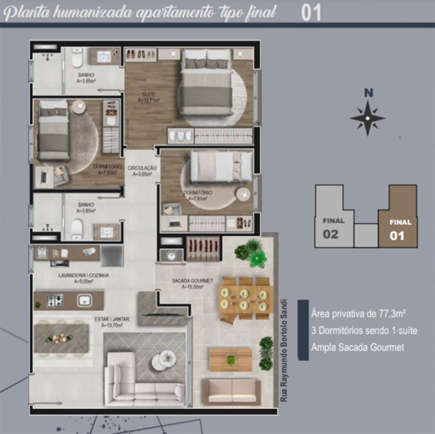 Área Privativa › 77,30m²