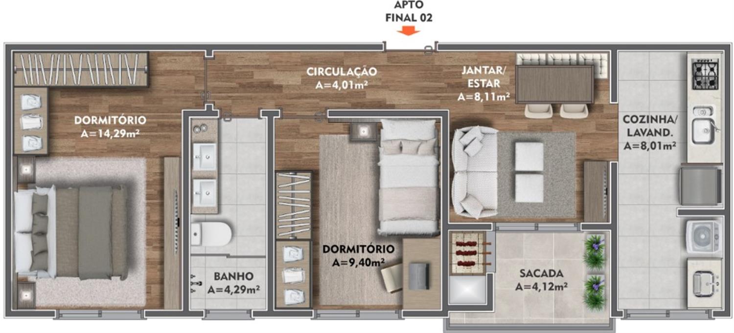 2 Dorm. | 1 Suíte(s) | 2 Box / Vaga(s)