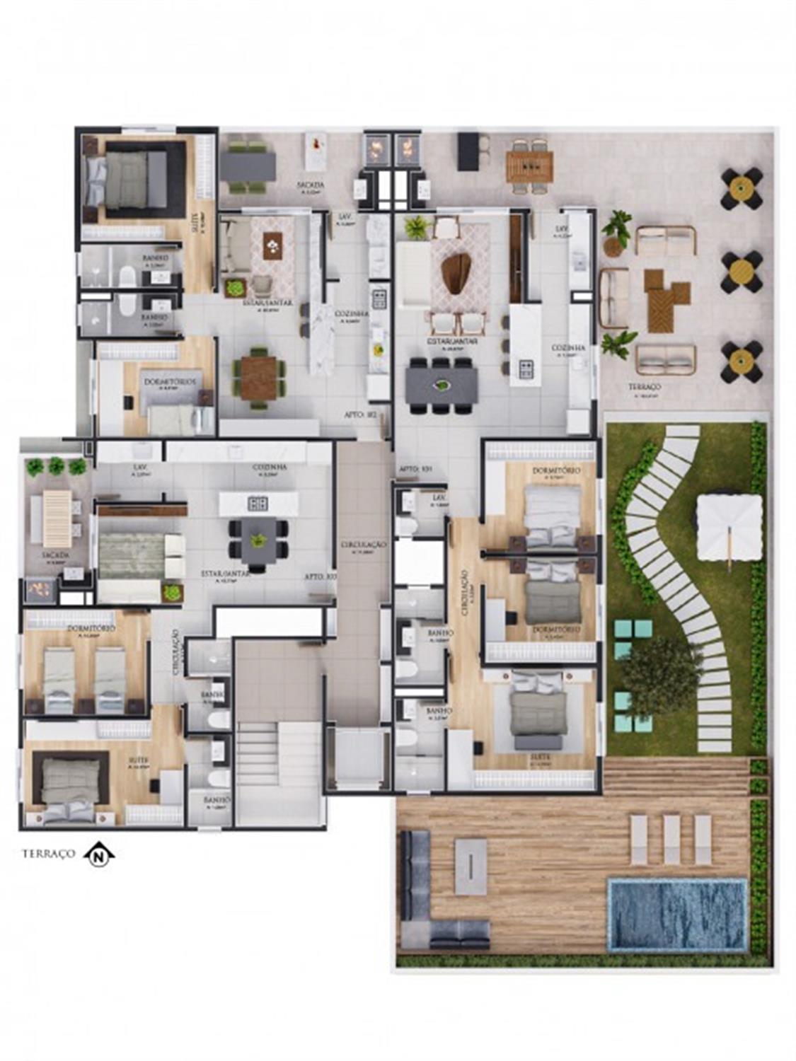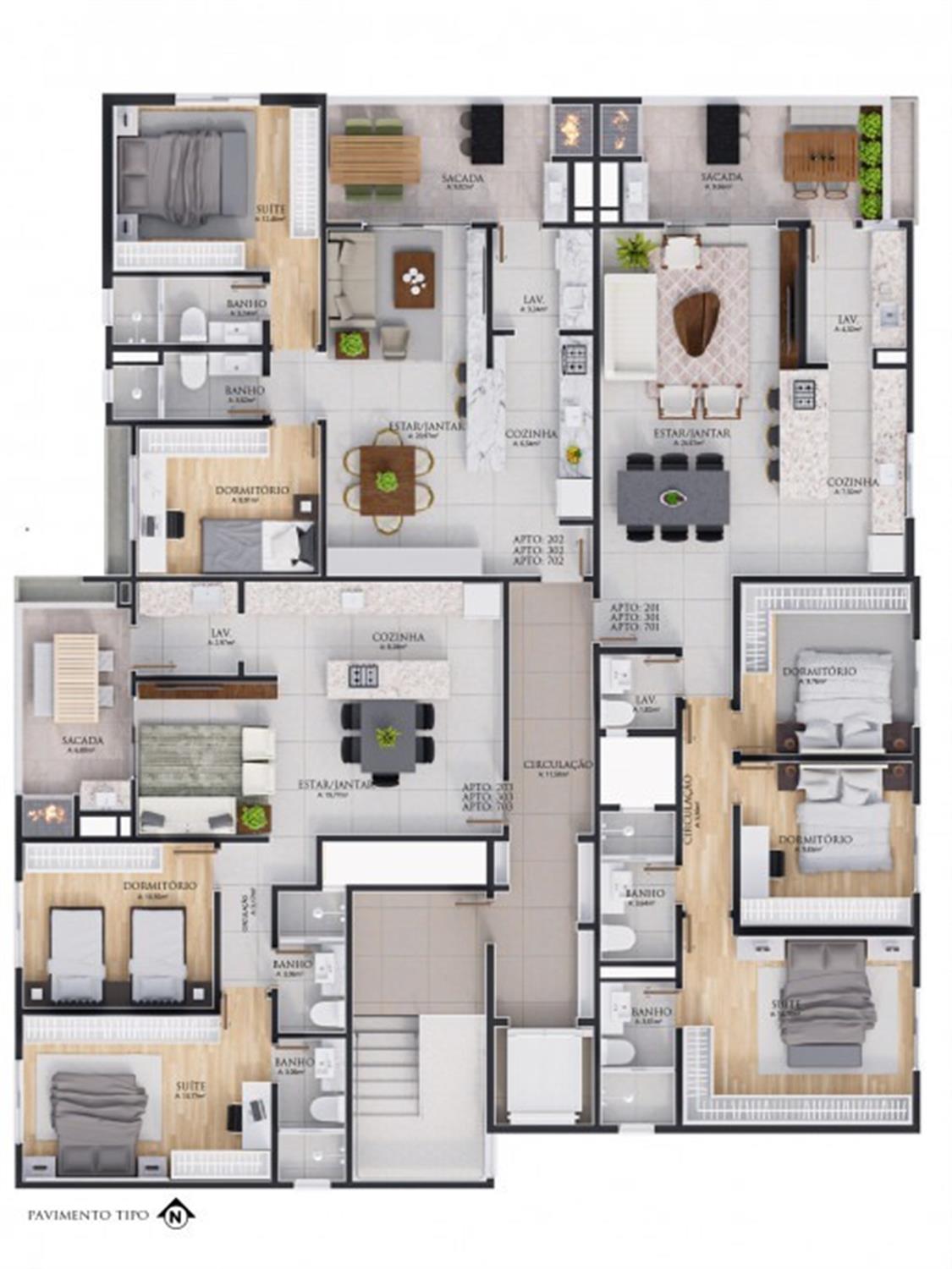 Apenas 3 apartamentos por andar