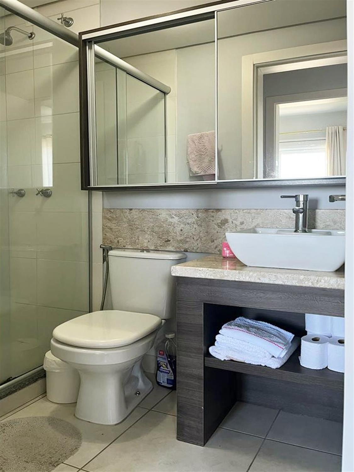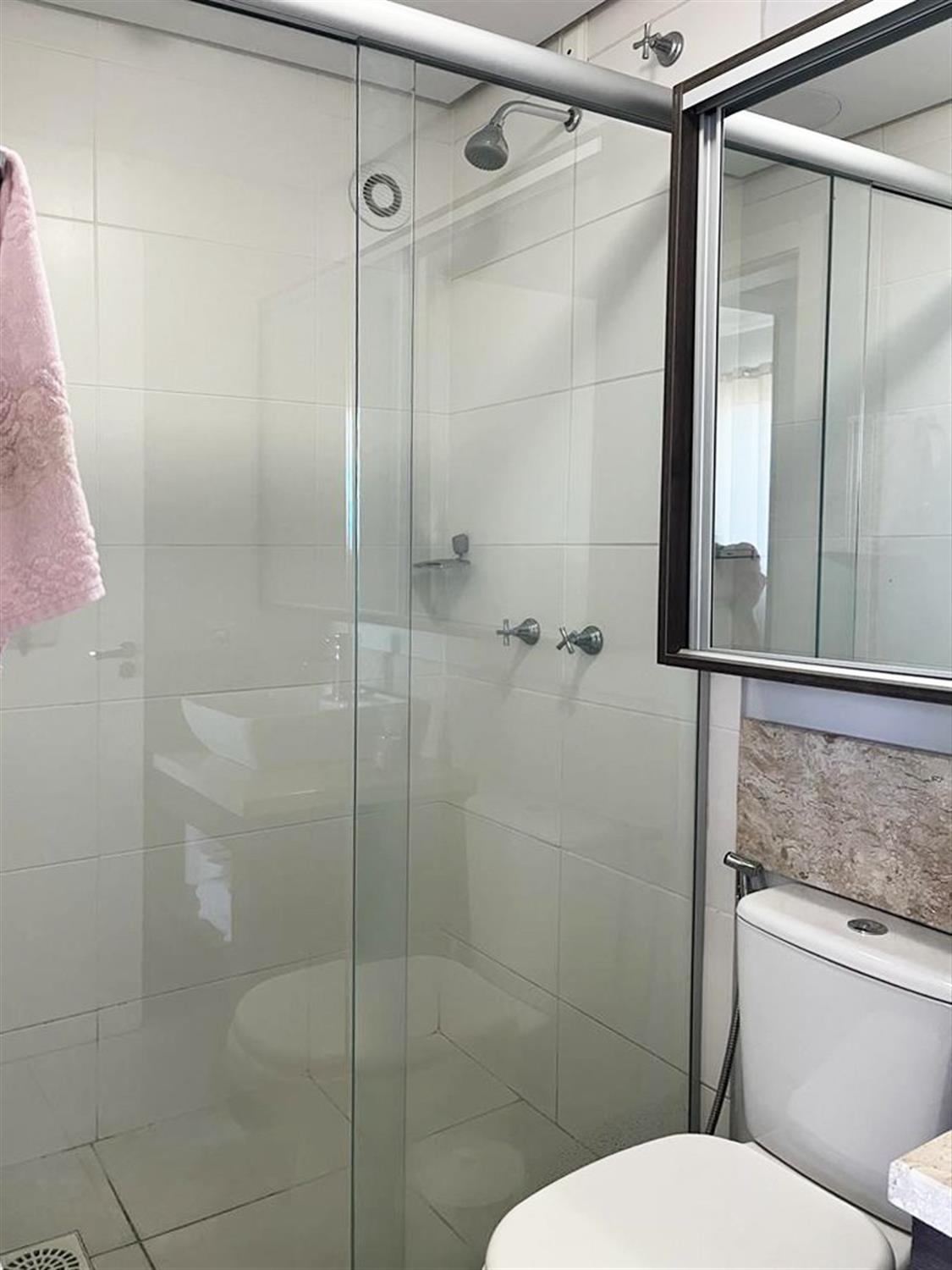 - Banheiro social com box de vidro;