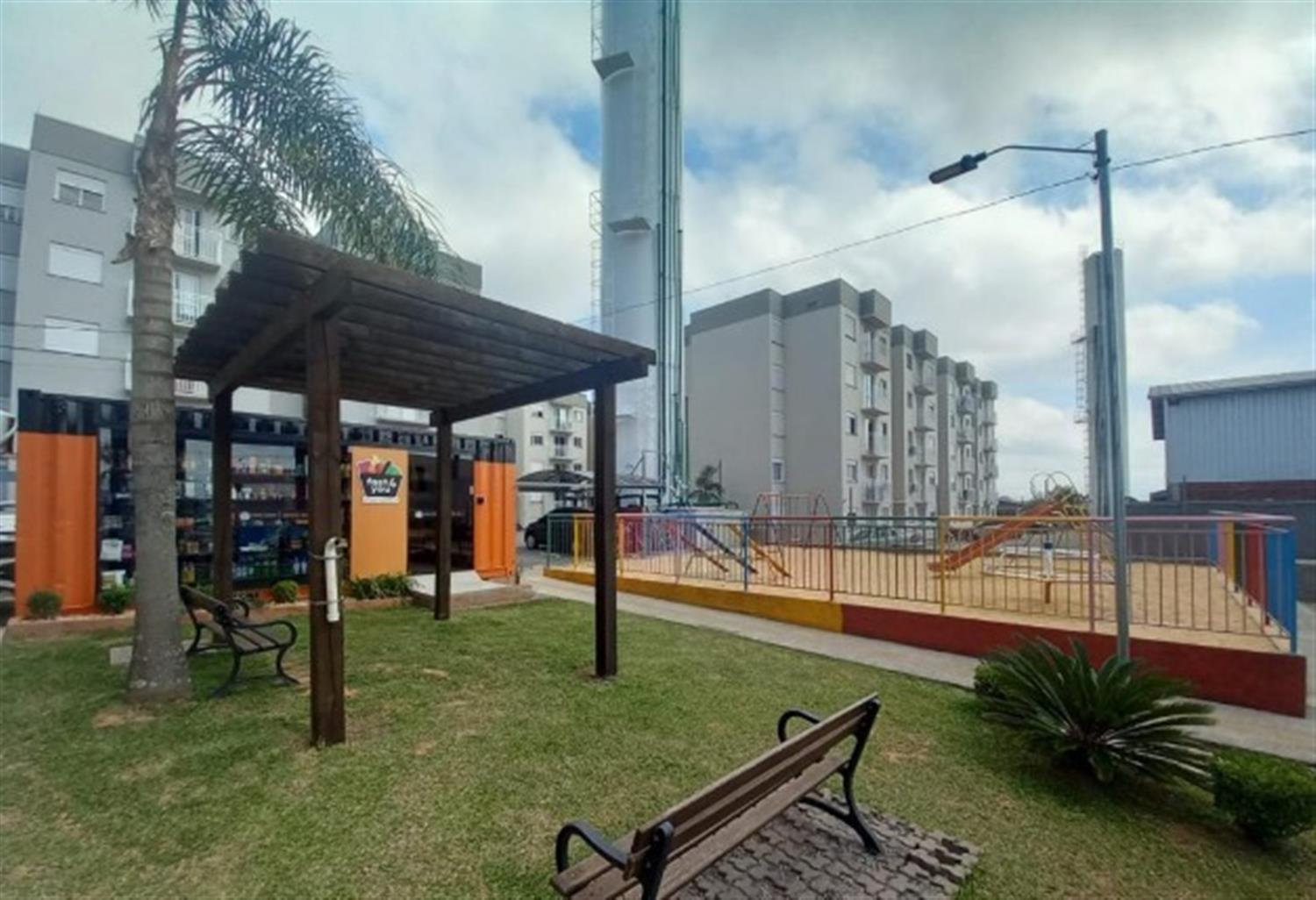 Condomínio com segurança 24 horas, totalmente fechado, entrada com tag, com câmera de segurança, área de lazer com churrasqueira ao ar livre, playground, salão de festa, pracinha para crianças, mercado dentro do condomínio.