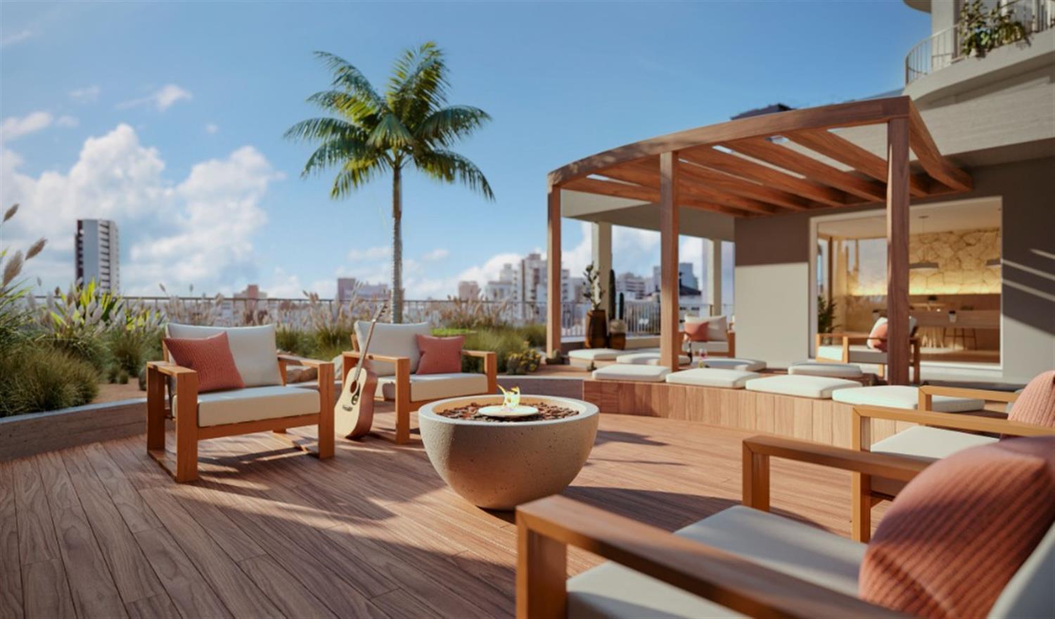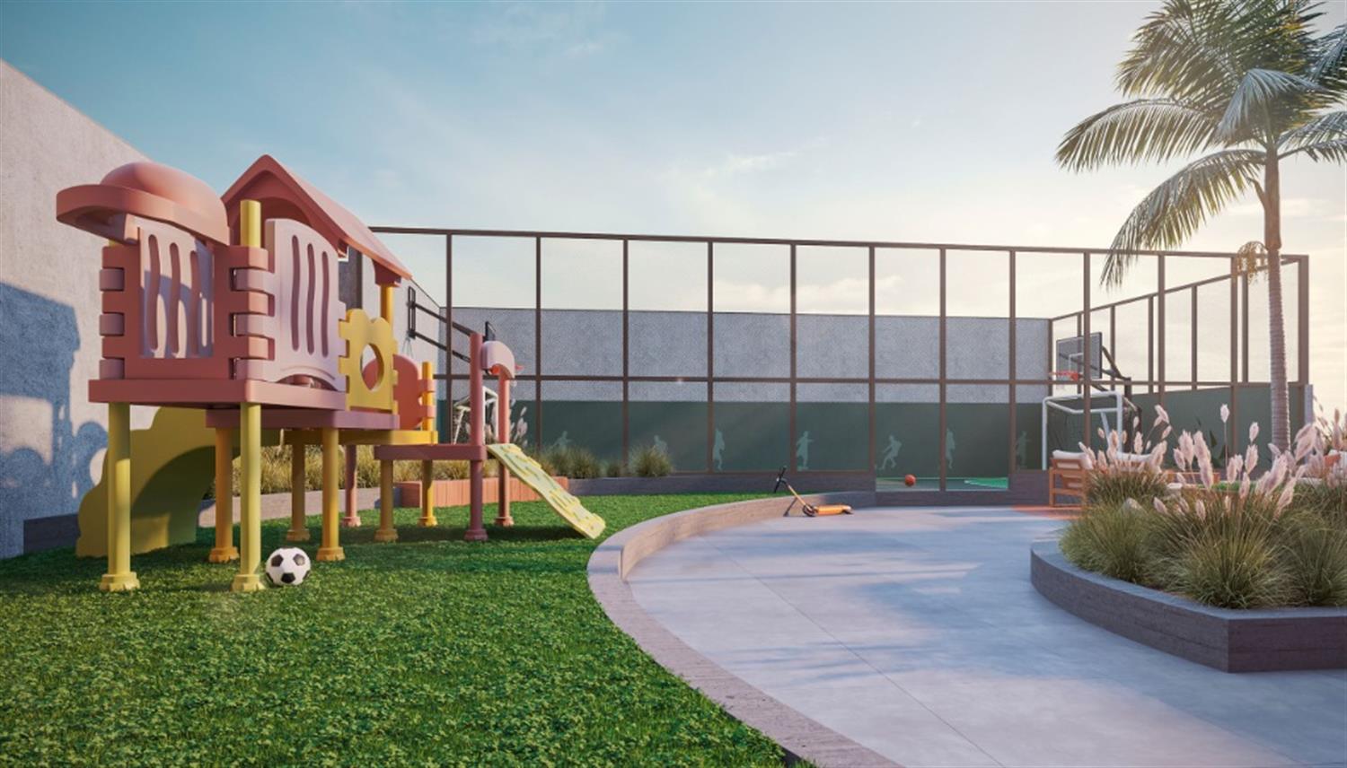 Terraço externo, quadra de esportes, Espaço kids, Playground, Salão de festas, Espaço fitness, Espaço Gourmet, Lounge com lareira de chão